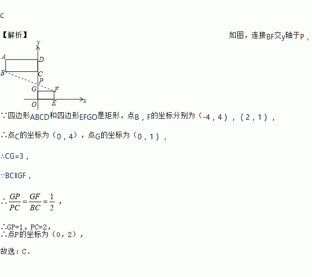 如图,矩形EFGO的两边在坐标轴上,点O为平面直角坐标系的原点,以y轴上的某一点为位似中心,作位似图形ABCD,且点B,F的坐标分别为(﹣4,4),(2,1),则位似中心的坐标为( )