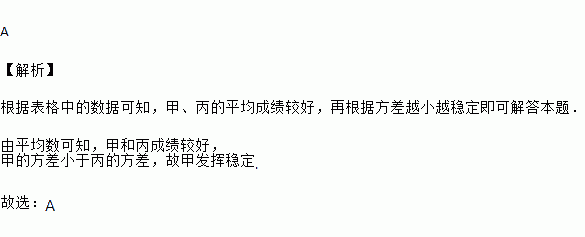 下表记录了甲、乙、丙、丁四名同学参加某区“中华魂”主题教育演讲比赛的相关数据:根据表中数据,要从中选择一名成绩好且发挥稳定的同学参加市级比赛,应该选择![]()