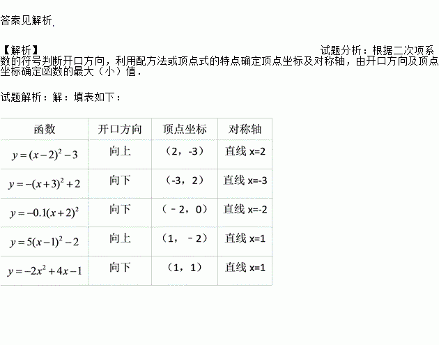 (2)指出二次函数y=a(x-h)2+k的开口方向,对称轴和顶点坐标.