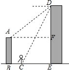 7.分析 作AF⊥DE于F,根据题意得出FE=AB=9米,AF=BE,∠DAF=45°,∠DCE=60°,设CE=x米,解直角三角形得出DE=$\sqrt{3}$CE=$\sqrt{3}$x(米),AF=DF,因此DF=DE-FE=$\sqrt{3}$x-9(米),得出方程,解方程即可18.2+x=$\sqrt{3}$x-9,求出CE,得出DE,即可得出结果.