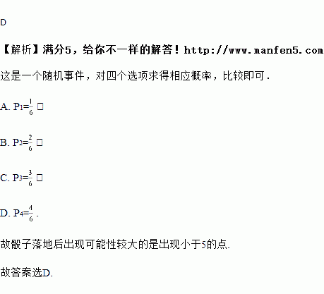 掷一枚质地均匀的骰子,骰子落地后出现可能性较大的是( )
