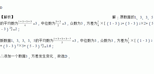 一组数据:1,3,3,5,若添加一个数据3,则发生变化的统计量是( )