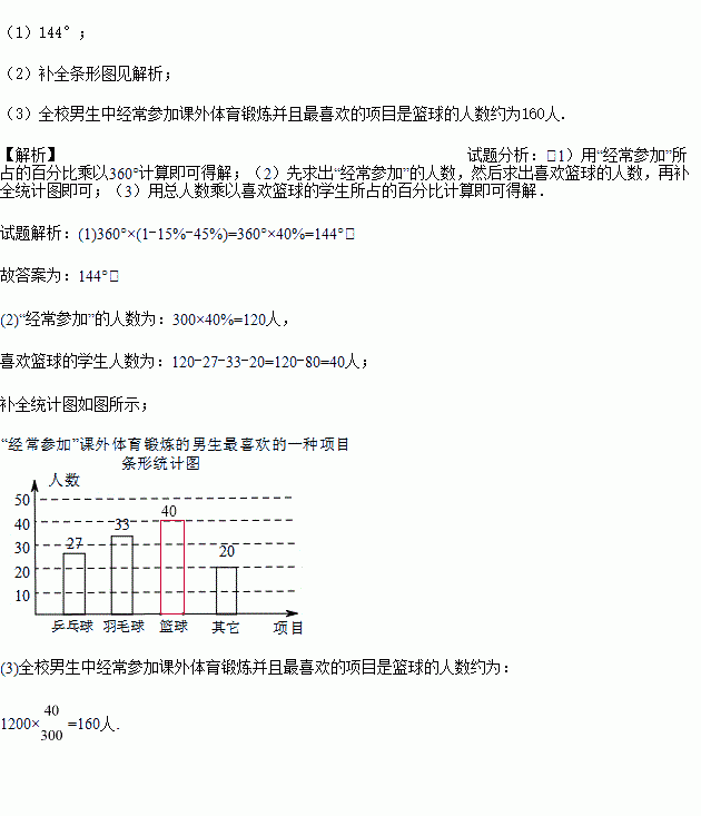 (3)¸ÃУ¹²ÓÐ1 200ÃûÄÐÉú£¬Çë¹À¼ÆÈ«Ð£ÄÐÉúÖо³£²Î¼Ó¿ÎÍâÌåÓý¶ÍÁ¶²¢ÇÒ×îϲ»¶µÄÏîÄ¿ÊÇÀºÇòµÄÈËÊý£»