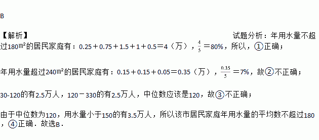 ¢Û¸ÃÊоÓÃñ¼ÒÍ¥ÄêÓÃË®Á¿µÄÖÐλÊýÔÚ150£180Ö®¼ä£»