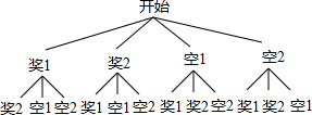 解答 解:(1)∵4张奖券中有2张是有奖的,