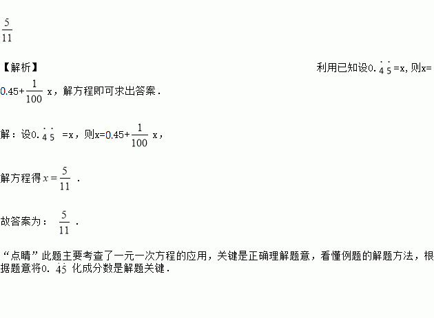 我们知道,无限循环小数都可以转化为分数.例如:将0. 转化为分数时,可设0. = ,则,解得 ,即0. =.仿此方法,将0. 化成分数是_______.