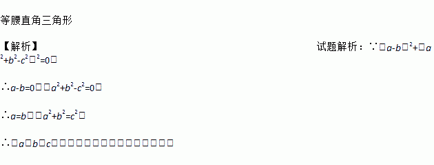 三角形的三边分别为a,b,c,且(a-b)2+(a2+b2-c2)2=0,则三角形的形状为_____________