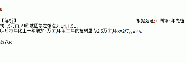 在西部大开发中,为了改善生态环境,鄂西政府决定绿化荒地,计划第1年先植树1.5万亩,以后每年比上一年增加1万亩,结果植树总数是时间(年)的一次函数,则这个一次函数的图象是( )