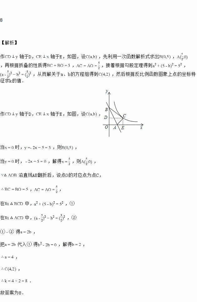 沿直线AB翻折后,设点O的对应点为点C,双曲线![]()