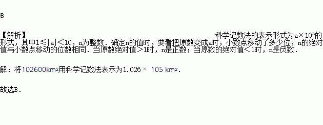 江苏省的面积约为102600km2,这个数据用科学记数法表示为
