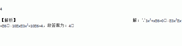 若3x2+x﹣6=0,那么10﹣x﹣3x2=________ .