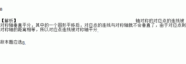 B 【解析】轴对称的对应点的连线被对称轴垂直平分,其中的一个图形平移后,对应点的连线与对称轴就不会垂直了,由于对应点到对称轴的距离相等,所以对应点连线被对称轴平分. 故本题应选B.右图是某市7月1日至10日的空气质量指数趋势图,空气质量指数小于100表示空气质量优良,空气质量指数大于200表示空气重度污染,某人随机选择7月1日至7月8日中的某一天到达该市,并连续停留4天.则此人在该市停留期间有且仅有1天空气质量优良的概率是( )