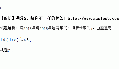 我省2013年的快递业务量为1.4亿件,受益于电子商务发展和法治环境改善等多重因素,快递业务迅猛发展,2014年增速位居全国第一.若2015年的快递业务量达到4.5亿件,设2014年与2013年这两年的平均增长率为x,则下列方程正确的是( )
