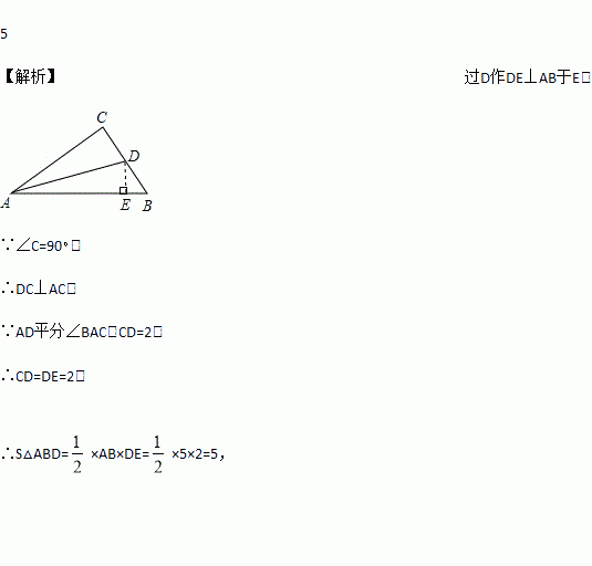 如图,△ABC中,∠C=90°,AD平分∠BAC,AB=5,CD=2,则△ABD的面积是________.