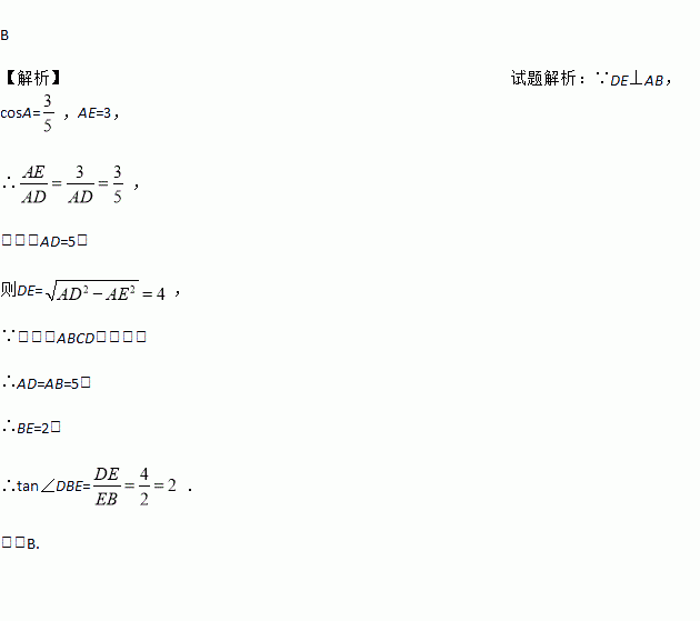 如图,在菱形中, , ,BE=3,则的值是