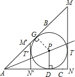 ∵平行于PD的直线MN与⊙P相切于T,PD⊥AC,