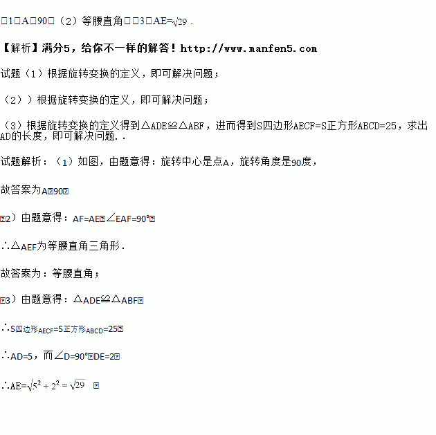 如图,点E是正方形ABCD的边DC上一点,把△ADE顺时针旋转△ABF的位置.