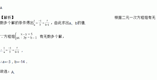 已知方程组有无数多个解,则a、b的值等于( )