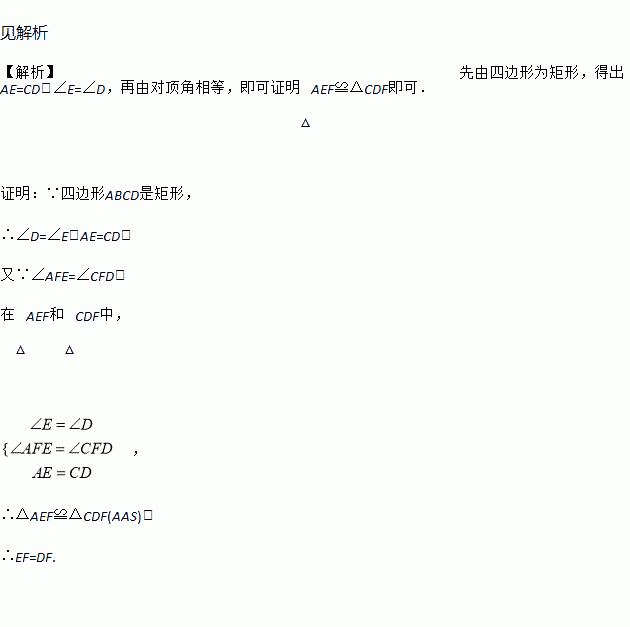 如图将矩形ABCD沿对角线AC对折,使△ABC落在△ACE的位置,且CE与AD相交于点F,求证:EF=DF.