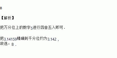 用四舍五入法,把3.14159精确到千分位,取得的近似数是( )