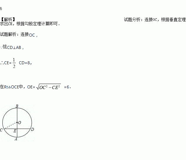 如图,AB是⊙O的直径,弦CD⊥AB,垂足为E,如果AB=20,CD=16,求线段OE的长.