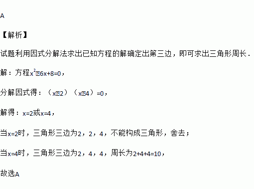 三角形两边长分别为2和4,第三边是方程x2﹣6x+8=0的解,则这个三角形的周长是( )