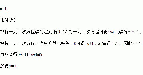 关于x的一元二次方程(n+1)x2+x+n2=1的一个根是0,求n的值.