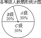(2)经过数据的整理可以发现:月销售额达到或超过25万元(即A级)的有6人,占总人数的30%,月销售额低于19万元(即C级)的有10人,占总人数的50%,所以B级占总人数的1-30%-50%=20%.这样,它们所占的圆心角分别为:A级:360°×30%=108°;B级:360°×20%=72°;C级:360°×50%=180°.画出来的扇形统计图如下图所示.