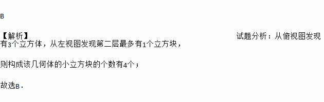 小红在观察由一些相同小立方块搭成的几何体时,发现它的主视图、俯视图、左视图均为如图,则构成该几何体的小立方块的个数有( )