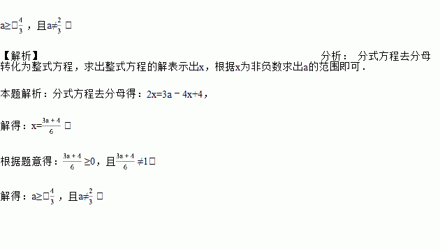若关于x的分式方程=﹣2的解是非负数,求a的取值范围.