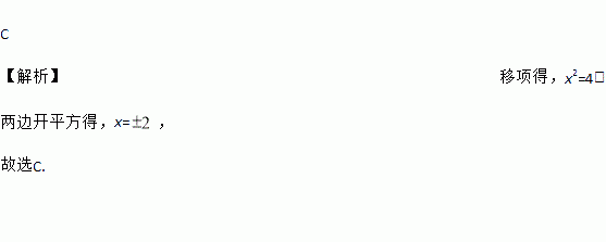 A. x=2 B. x=﹣2 C. x1=2,x2=﹣2 D. x1=,x2=﹣