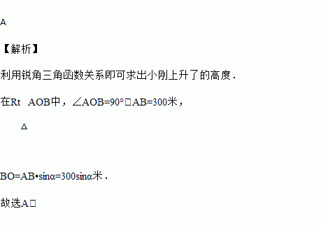 如图,小刚从山脚A出发,沿坡角为的山坡向上走了300米到达B点,则小刚上升了( )![]()