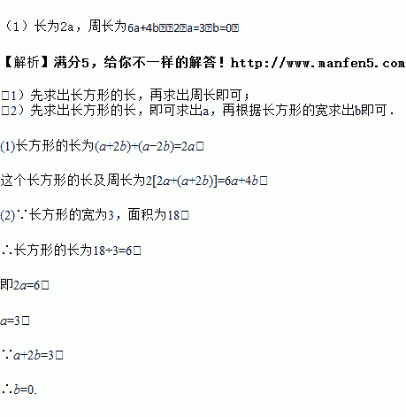 (2)若长方形的宽为3,面积为18,求a、b的值.