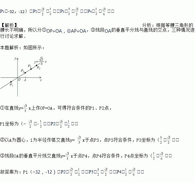 x上取点P,使△OPA是等腰三角形,求所有满足条件的点P坐标.