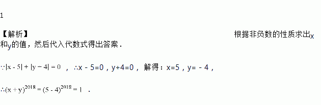 已知|x-5|+|y+4|=0,则代数式(x+y)2018的值是________.