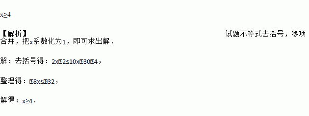 解不等式:2(x-1)≤ 10(x-3)-4