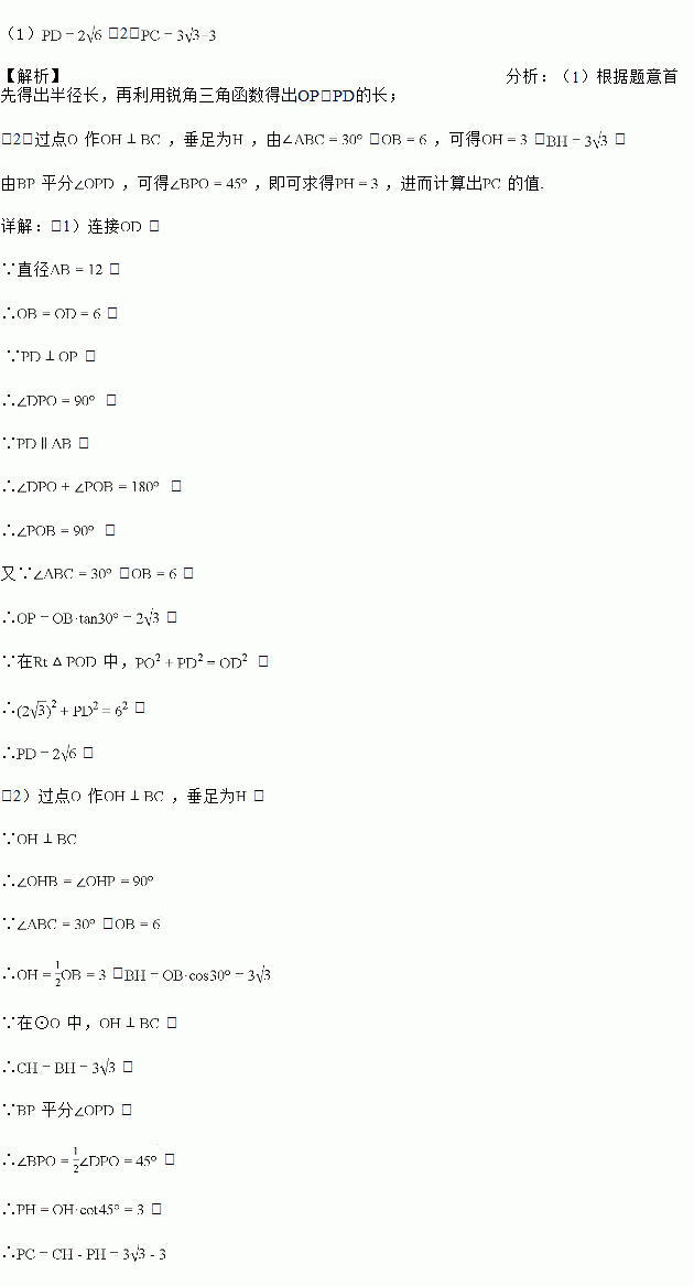 (1)如图1,当时,求PD的长;
