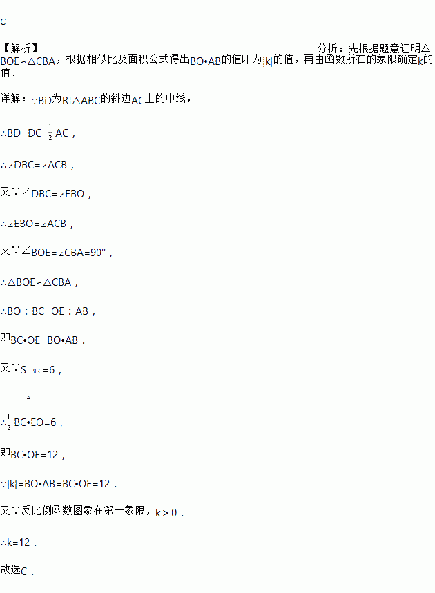 如图,Rt△ABC的直角边BC在x轴正半轴上,斜边AC边上的中线BD反向延长线交y轴负半轴于E,双曲线y=