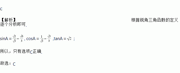 如图,已知Rt△ABC的边长分别为1,,,则下列三角函数表示正确的是( )
