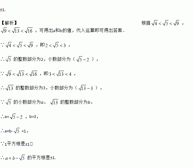 如果的小数部分为a, 的整数部分为b,求的平方根.