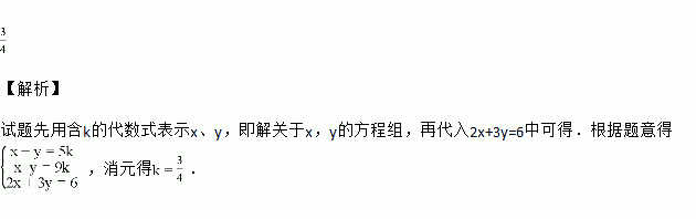 若关于x、y的二元一次方程组的解也是二元一次方程2x+3y=6的解,则k的值为______.