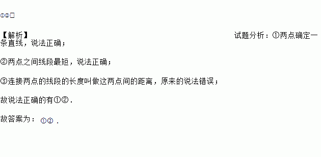 ①两点确定一条直线;②两点之间,线段最短;③连接两点间的线段,叫做这两点的距离.