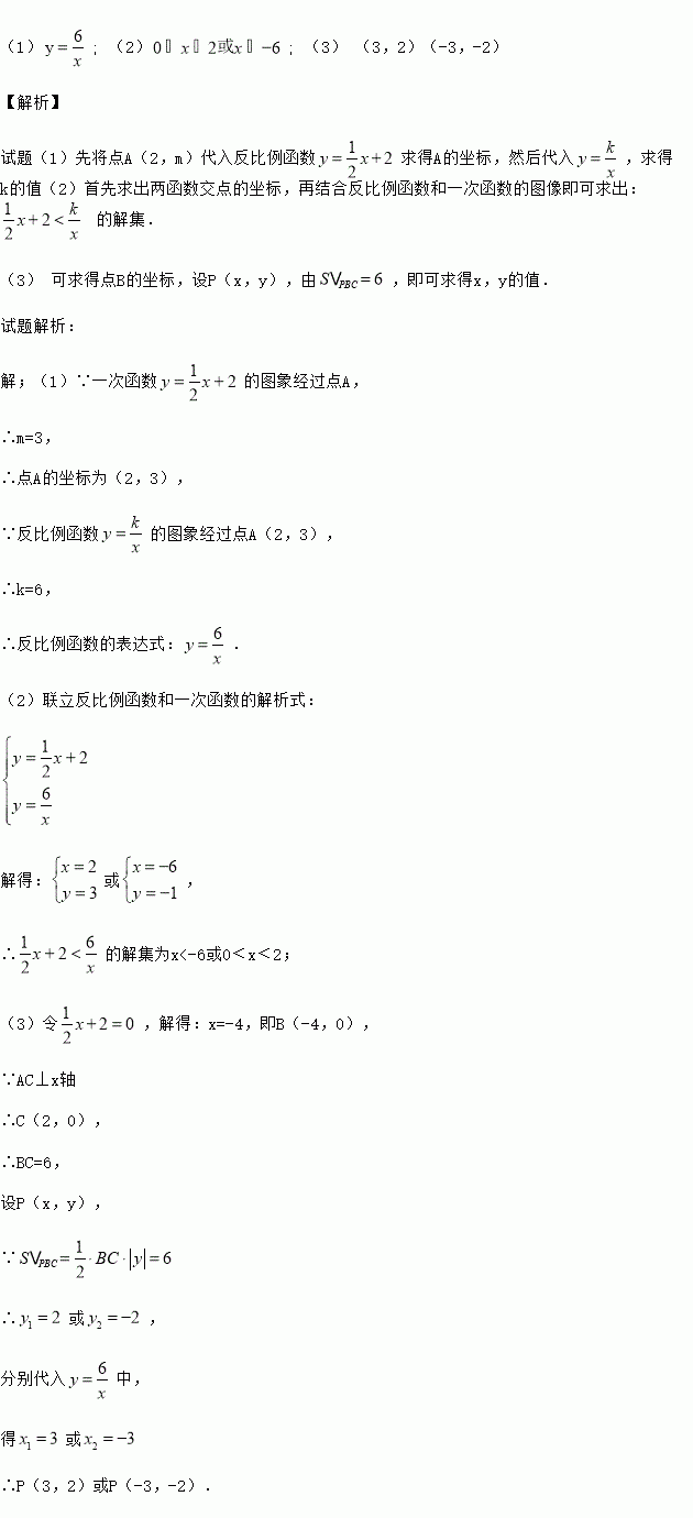 (3)过点A作AC⊥x轴,垂足为点C,如果求点P在反比例函数图象上,且△PBC的面积等于6,请直接写出点P的坐标.