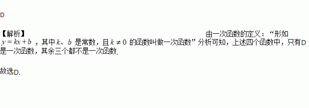 下列关系式中,表示y是x的一次函数的是( )