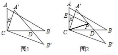 如图1,在△ABC中,∠ACB=90°,∠B=30°,将△ABC绕顶点C顺时针旋转,旋转角为β