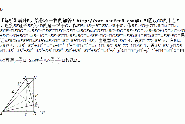 (2017•鄂州)如图四边形ABCD中,AD∥BC,∠BCD=90°,AB=BC+AD,∠DAC=45°,E为CD上一点,且∠BAE=45°.若CD=4,则△ABE的面积为( )