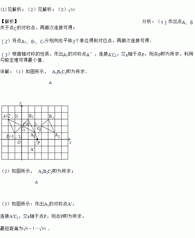 (3)在x轴上求作一点P,使PA1+PC2的值最小,并求最小值.