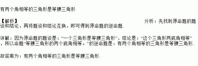 写出命题“等腰三角形两个底角相等”的逆命题_______________________.