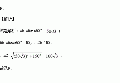 A.m B.100m C.150m D.m
