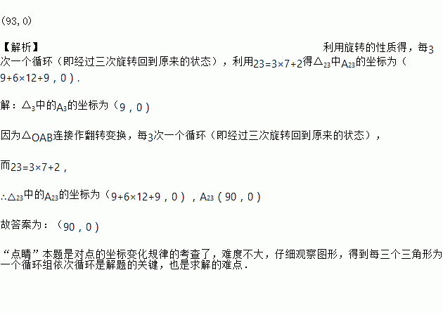 如图,在直角坐标系中,已知点A(﹣3,0)、B(0,4),对△OAB连续作翻转变换,依次得到△1、△2、△3、△4…,则△23中的B23的坐标为_______________.